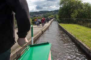Apropå bråttom, så gäller det att ha gott om tid när man åker kanalbåt. Farten ligger strax under promenadtempo, men det var häftigt att åka över en av Storbritanniens längsta och högsta akvedukter. Dessa kanaler byggdes under en tid då vattenvägarna fortfarande sågs som den naturliga vägen att transportera varor.