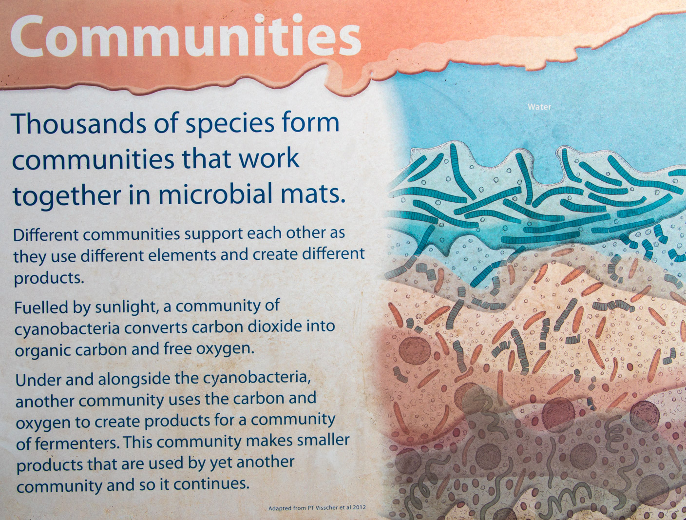 I Shark Bay finns en mycket speciell vattenmiljö som orsakas av avdunstning av havsvattnet, som gör det oerhört salt. Bara cyanobakterier överlever och de tros vara starten till liv på jorden då de avsöndrar syre. Så så här kan det ha sett ut en gång i begynnelsen.